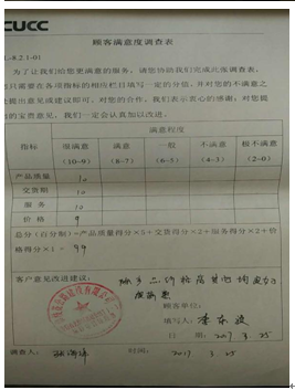 2、致力提升客戶滿意度。為更客觀評價公司為客戶提供的的產(chǎn)品和服務(wù)水平,發(fā)現(xiàn)自身存在的不足,推動業(yè)務(wù)改善,公司采取各種措施提升客戶滿意度。經(jīng)調(diào)查了解,與當?shù)仄渌嗥髽I(yè)相比,我司在客戶中有良好的口碑。