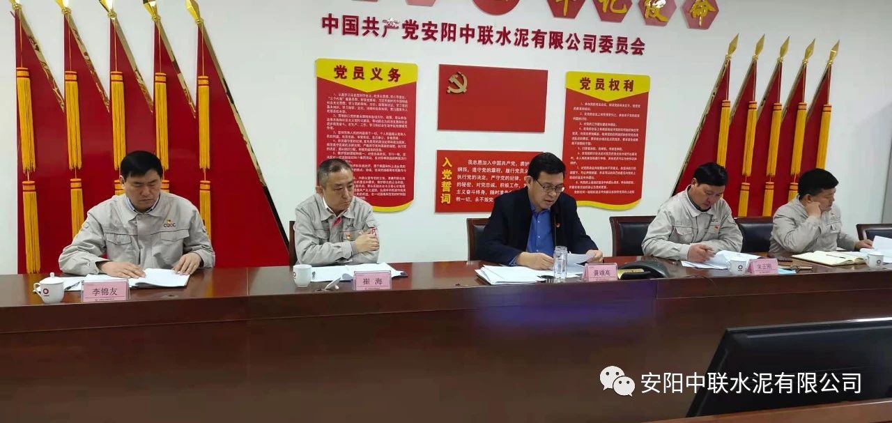 按照中國聯(lián)合水泥黨委關(guān)于認真開好2020年度民主生活會通知要求,2月24日上午,安陽中聯(lián)2020年度黨員領(lǐng)導(dǎo)班子民主生活會在公司黨員活動室召開。中國建材股份黨委常委、執(zhí)行董事、副總裁,中國聯(lián)合水泥黨委書記、董事長崔星太通過視頻連線督導(dǎo)會議并作點評講話。中國聯(lián)合水泥黨群工作部主任侯萍、紀檢監(jiān)察室副主任董治及安陽中聯(lián)黨委委員、領(lǐng)導(dǎo)班子成員參加會議。安陽中聯(lián)黨委書記、總經(jīng)理黃頌高主持會議。
